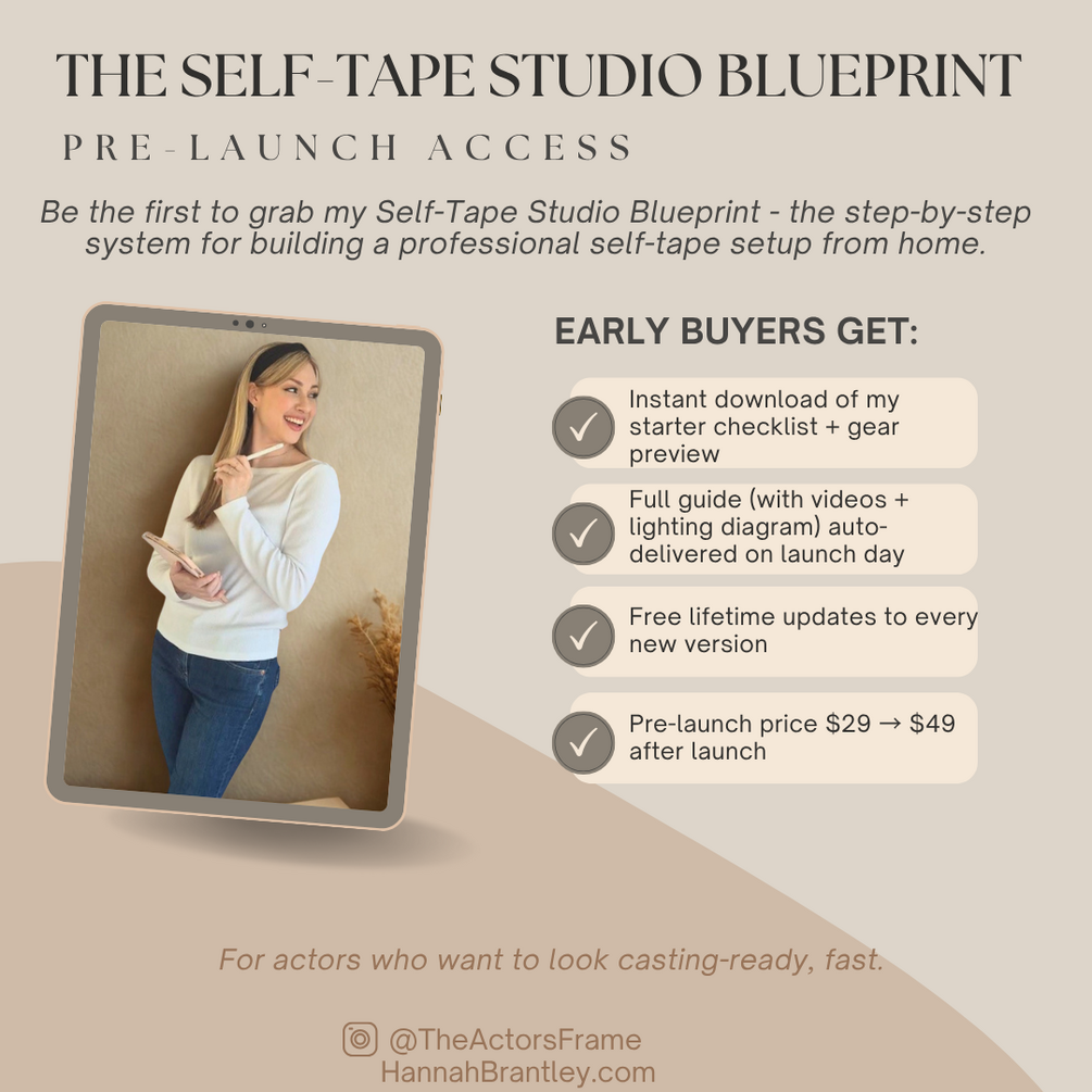 Be the first to grab my self-tape studio blueprint- the step-by-step system for building a professional self-tape setup from home.